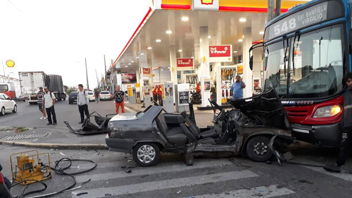 Fuerte choque entre un auto y un colectivo en Camino Negro
