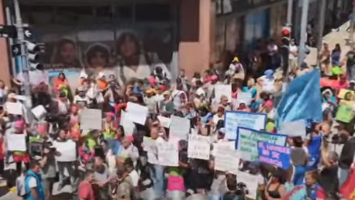 Protesta de Barrios de Pie, por alimentos, frente al hotel en el que hospeda el Presidente
