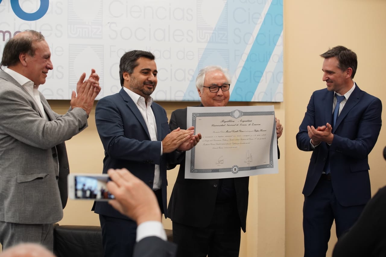 Manuel Castells disertó en la UNLZ y fue reconocido como profesor honorario