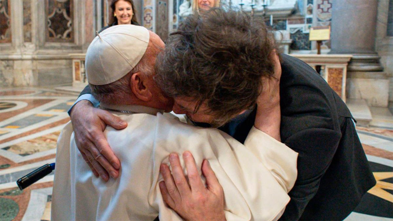 Luego del afectuoso saludo inicial, el Papa Francisco se reúne con Javier Milei en el Vaticano
