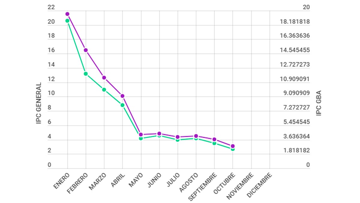 La inflación de octubre fue de 6,3% y 2022 suma un 76,6%