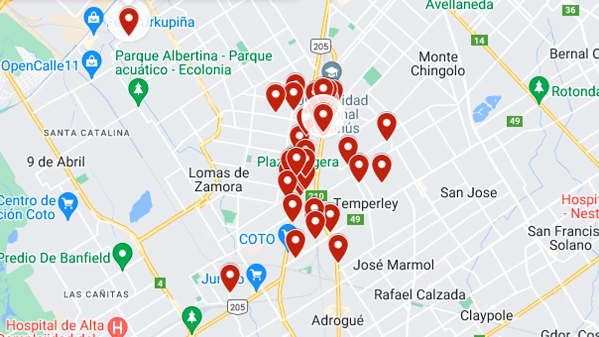 El mapa del raid delictivo en Lanús y Lomas de Zamora