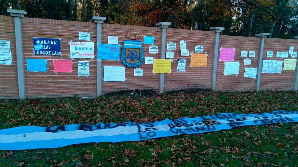 “Abran las escuelas”, el reclamo que llegó al predio de la AFA