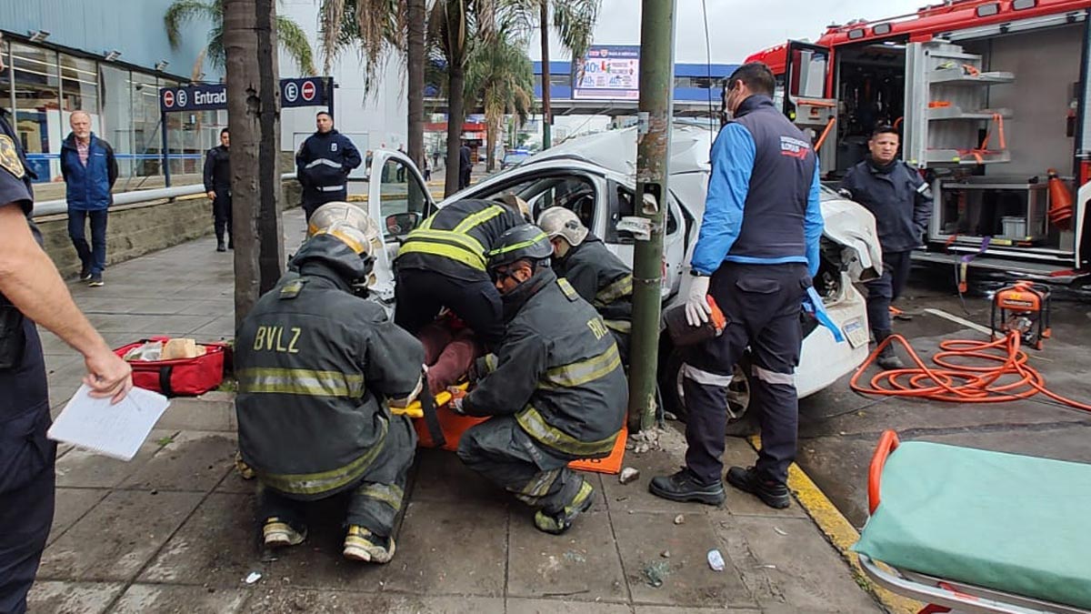 Un auto chocó contra una poste de luz en Temperley
