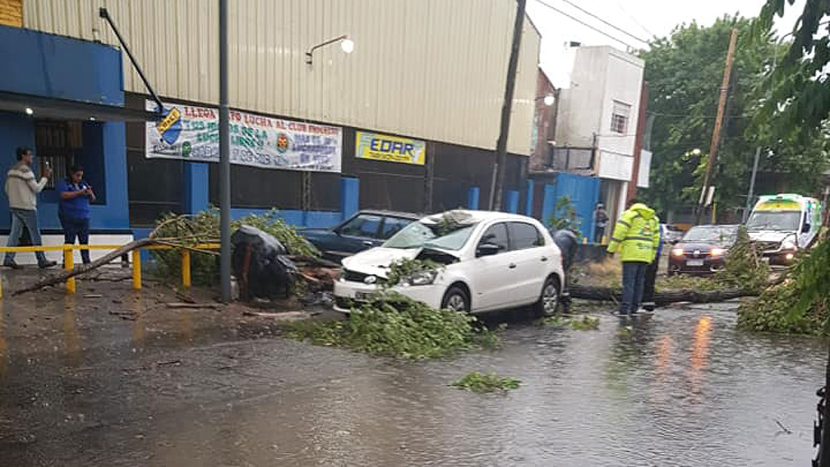 El paso del temporal dejó árboles y postes caídos en Lanús