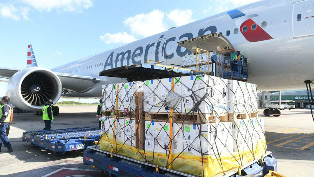 Llegaron 200 mil dosis pediátricas de Pfizer en un vuelo de American Airlines